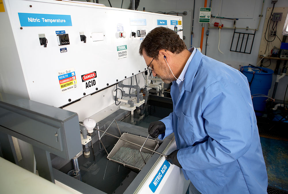 TE Connectivity, has cleaning processes that adhere to ASTM A967 & A380 standards. Special cleaning processes can also be developed if standard methods do not meet your needs.